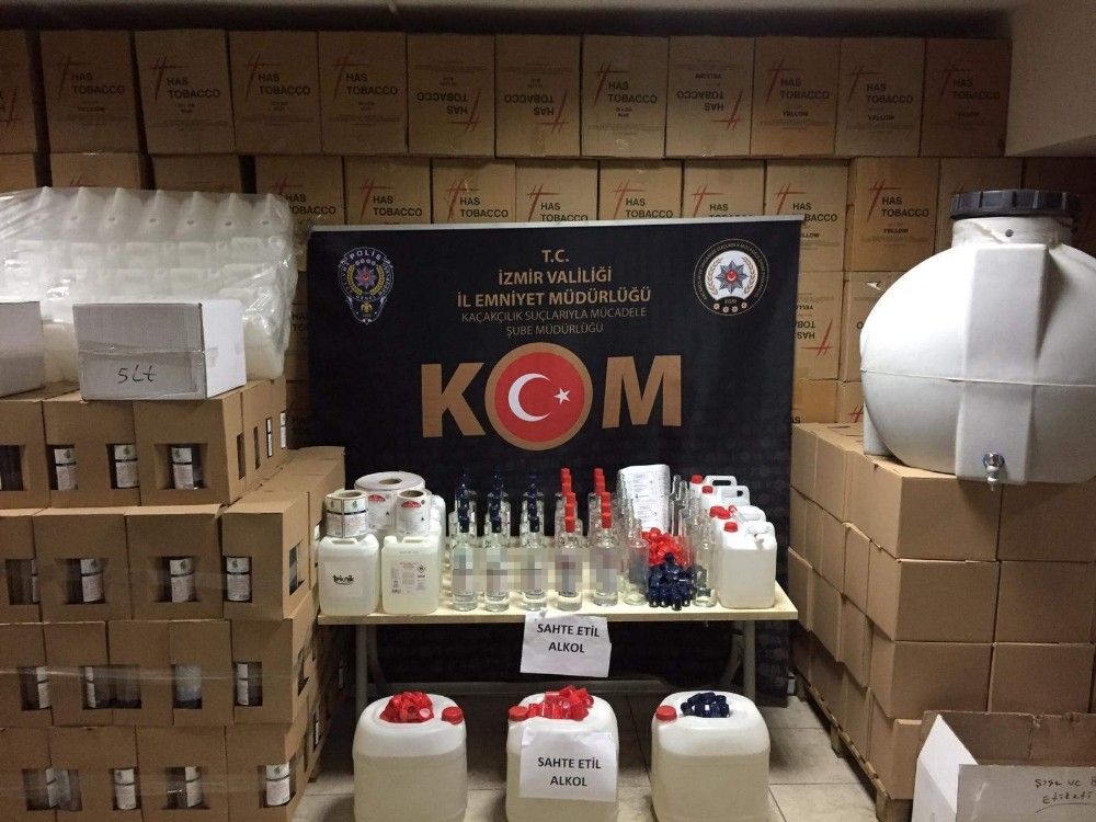 İzmir'de sahte içki zehirlenmelerinin önüne geçmek amacıyla sahte içki üreten şahıslara yönelik yapılan operasyonlarda 2020 yılına ait bilanço açıklandı. Kaçakçılık Suçlarıyla Mücadele Şube Müdürlüğü ekipleri, gerçekleştirdiği operasyonlarda bin 650 şişe kaçak içki, 24 bin şişe sahte içki ve 93 ton etil alkol ele geçirdi. Yıl boyunca ekipler tarafından düzenlenen 106 operasyonda 185 kişi yakalanırken, 21 kişi de tutuklanarak cezaevine gönderildi.