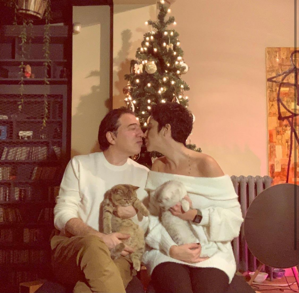Bu fotoğraf Say çiftinin takipçilerinden büyük beğeni aldı.Kedi kızlar kucakta, keşke Kumru kuşumuz da burada olsaydı...ailemiz ve aile gibi dostlarımız kalbimizde... bence çok güzel bir sene olacak demedi demeyin