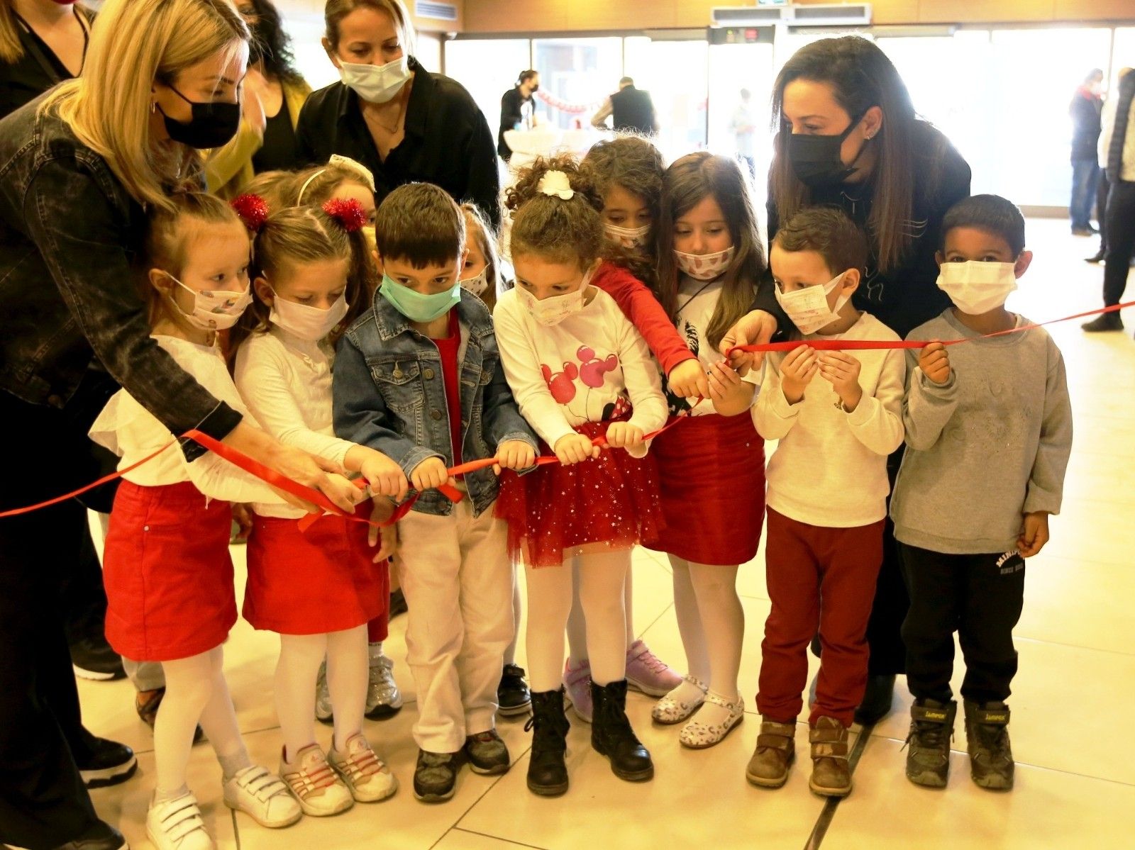 Çocukları neşe içinde karşılayan Belediye Başkanı Filiz Ceritoğlu Sengel, 23 Nisan temalı resim serginin açılış kurdelesini çocuklarla birlikte kesti.