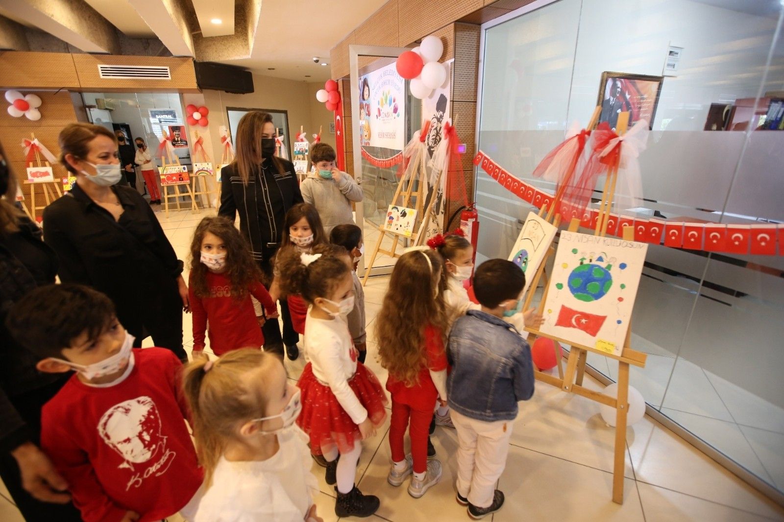 Selçuk Belediyesi Çocuk Bakım Yurdu minikleri, 23 Nisan Ulusal Egemenlik ve Çocuk Bayramı kapsamında yaptıkları resimleri Belediye Hizmet Binası giriş katında sergileme fırsatı buldu.