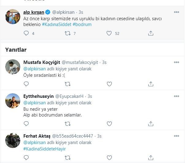 Öte yandan genç kadının ünlü sunucu Alp Kırşan'ın da komşusu olduğu öğrenildi. Kırşan, Novystka'nın cansız bedeninin bulunduğu saatlerde Twitter hesabından bir paylaşım yaparak, "Az önce karşı sitemizde Rus uyruklu bir kadının cesedine ulaşıldı, savcı bekleniyor" dedi.