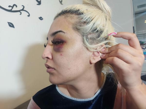Harmandalı Mahallesi'nde Gamze Tümtürk, 3 senedir birlikte olduğu E.Y.'den, fiziksel ve duygusal şiddet gördüğünü öne sürerek 3 ay önce ayrıldı. Bu süreçte E.Y. tekrar barışmak istediğini söyledi ancak Tümtürk bunu kabul etmedi. 4 Mart'ta saat 06.00 sıralarında E.Y. eve geldi. Açık unutulan kapıdan giren E.Y., iddiaya göre yatak odasında uyuyan Gamze Tümtürk'ün yanına gidip barışmak istediğini söyleyerek, sarılmaya çalıştı. Tümtürk, tepki verince E.Y. genç kadına saldırdı. Olaydan sonra gözleri başta olmak üzere yüzünün ve vücudunun birçok bölgesinde morluklar oluşan Tümtürk, polise gidip şikayetçi oldu. Olay günü polis ekiplerince gözaltına alınan E.Y., emniyetteki işlemlerinin tamamlanmasının ardından sevk edildiği adliyede tutuksuz yargılanmak üzere serbest bırakıldı.