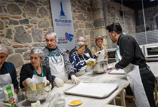 İzmir Büyükşehir Belediyesi tarafından 60 yaş ve üstü yurttaşların iyi olma halini ve yaşam boyu öğrenmelerini desteklemek amacıyla başlatılan 3. Yaş Üniversitesi’nin seçmeli dersleri ilgi çekiyor. Sağlık İşleri Dairesi Başkanlığı Sağlık Eğitimleri Şube Müdürlüğü tarafından organize edilen ve Meslek Fabrikası’nda verilen teorik eğitimlerin yanı sıra uygulamalı eğitimler de öğrencilerin hayatlarında fark yaratıyor. Seçmeli ders olarak “Mutfak Atölyesi”ni seçen 60 yaş üstü öğrenciler, diyetisyen eşliğinde her hafta sağlıklı yemeklerin yapımını öğreniyor. İlk hafta çıtır kabak yemeği yapmayı öğrenen katılımcılar, bu hafta da çay eşliğinde yemek üzere grissini yapmayı öğrendi.