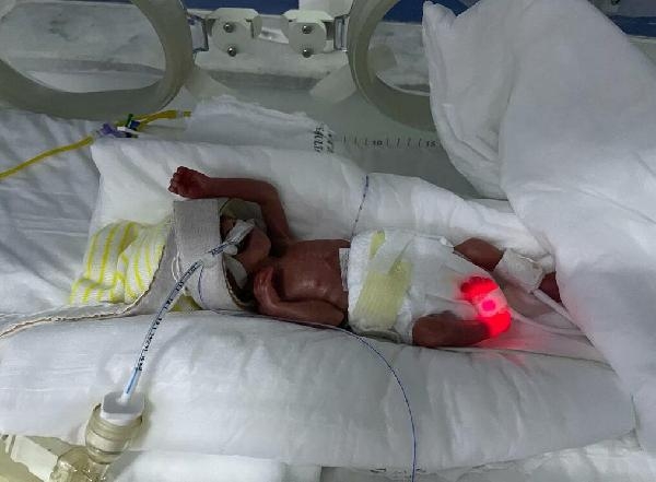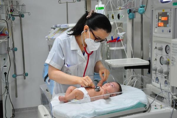 "Gebelik haftasına göre 24, ölçümlere göre 22 haftalık acil sezaryen ile 390 gram doğan kız bebeğimizi ağır prematüre ve ileri solunum sıkıntısı nedeniyle yenidoğan yoğun bakım ünitemize yatırdık. Birçok zorlu süreç, müdahale ve ameliyatlardan geçen hastamız yaklaşık 160 gün yoğun bakım ünitemizde, 20 gün de yenidoğan servisinde yattı. Birçok problemle karşılaştık. Normalde bu kadar ileri düşük doğum ağırlıklı bebeklerin yaşama şansları yüzde 10 civarlarında; bu da çok düşük bir oran. Hem 400 gramın altında doğup hem de ileri prematüre olmasından dolayı hayatta kalma oranları çok düşük. Bu bebekleri sağlıklı şekilde yaşatmanın yanı sıra hayata bağlamak da önemli. 6 aydır takip ediyoruz ve sağlıklı bir şekilde taburcu ediyoruz. Ailesi, hayatta kalma oranı çok düşük olmasına rağmen hayatı tutunan bebeklerine Mucize ismini verdi." (DHA)