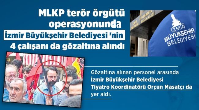 MLKP terör örgütü operasyonunda İzmir Büyükşehir Belediyesi'nin 4 çalışanının da gözaltına alındığı öğrenildi.