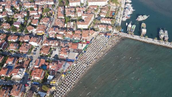 MUĞLA'nın Ula ilçesinin 'Sakin Şehir' unvanlı Akyaka Mahallesi'nin 4 bin olan nüfusu, Kurban Bayramı tatilinde 15 kat artarak 60 bine ulaştı. Havadan görüntülenen 'Halk Plajı'nda adım atacak yer kalmadı.