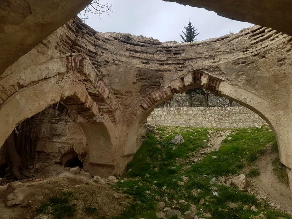 Adıyaman'ın Besni ilçesinde bulunan ören yerindeki 400 yıllık tarihi Meydan Hamının içinde yeşeren incir ağacı metrelerce yükseldi.