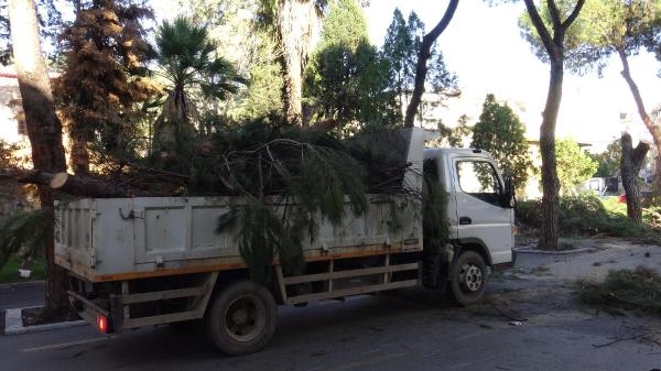 AYDIN'ın Efeler ilçesinde, aralarında asırlık olanlarında bulunduğu toplam 46 çam ağacı, devrilme riski bulunduğu gerekçesiyle belediye ekipleri tarafından kökünden kesildi, 2 ağaç ise budandı.