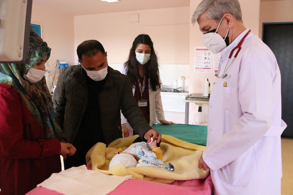 Diyarbakır'da ikamet eden Esvet ile Amine Solmaz çiftinin tek çocukları olan 5 aylık Efraim'in nefes borusuna ailenin taktığı çengelli iğneli nazar boncuğu kaçtı. Aile bebeklerinin ağzına kaçan nazar boncuğunu çıkardı ama çengelli iğneyi çıkaramayınca en yakın hastaneye başvurdu. Burada yapılan ilk müdahalenin ardından bebek Elazığ'a sevk edildi. Ambulansla Fırat Üniversitesi (FÜ) Hastanesi Çocuk Gastroenteroloji Hepatoloji ve Beslenme Bölümü'ne getirilen bebeğin yapılan tetkiklerinde iğnenin yemek borusunun alt kısmında takılı kaldığı tespit edildi. Hemen Çocuk Endoskopi Ünitesine alınan bebeğin nefes borusundaki iğne, yapılan endoskopik yöntemle yaklaşık 15 dakikalık sürede çıkarıldı. Sağlık durumu iyi olan bebek ve ailesi taburcu edildi.