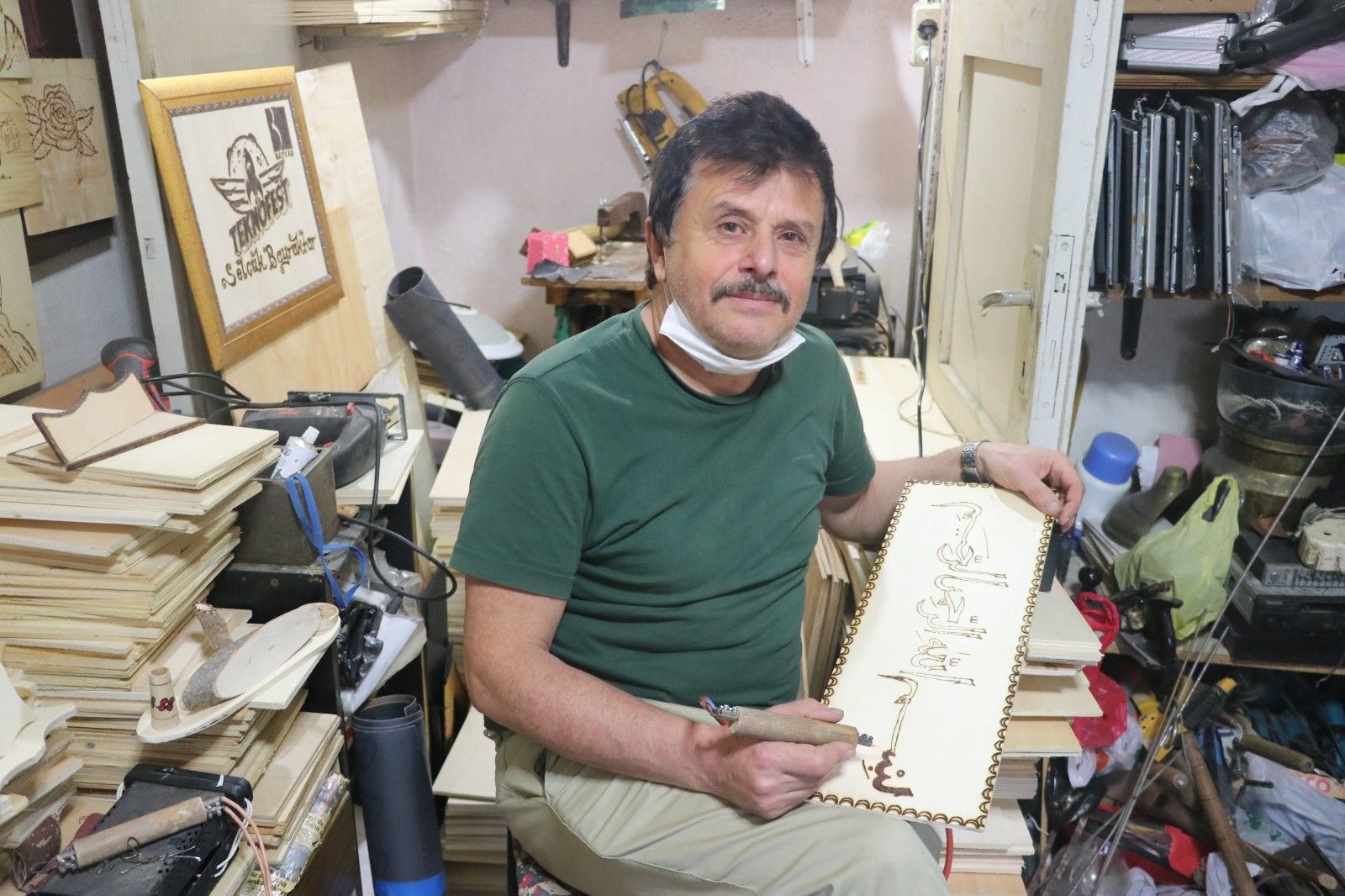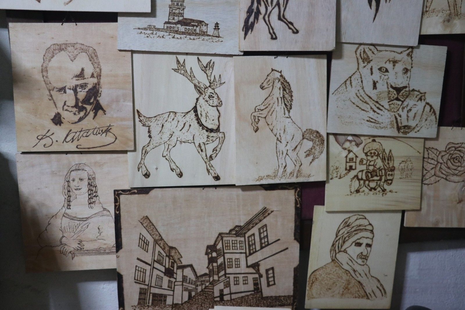 Ahşap yakma sanatını çok severek sürdürdüğünü ve yaptığı her eserde 16 yaşına geri döndüğünü belirten Gürcan Sarıbıyık, "Ahşap yakma sanatı dedemden kalma mesleğimizdir. Dedemden babama kaldı, babamdan bana kaldı, bizde son oluyoruz. Çünkü kaybolmaya yüz tutmuş meslek ve geleneksel mesleklerin getirisi biraz düşük oluyor. O yüzden biz de son demlerini yaşıyoruz. Tabi ki bizim işimiz hep elde yapılan bir şey. Daha önce ahşabı da elde oyuyorduk. Şimdi elde oyma makinelerimiz var. Selçuklu döneminden daha önce ilk ateş bulunduğunda metali ısıtmışlar, damgalar vurmuşlar. Bizler de sonradan sobalarda ateşi ısıtıp yaptık. Şimdi de ev havyalarımız var. Her çeşit ahşap kullanıyoruz ve ne isterseniz yapıyoruz. Daha çok canlı ağaç kesmemeye çalışırız. Şuana kadar canlı ağaç kesmedik. Bir yaprağın düşmesini bile istemeyen insanlarız" dedi.