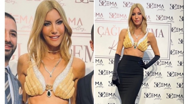 Ünlü manken Çağla Şıkel Yeşilköy’de düzenlenen ‘İstanbul Jewelery Show’ fuarı kapsamında 5 milyon TL değerinde altın kaplama bir büstiyer giydi.