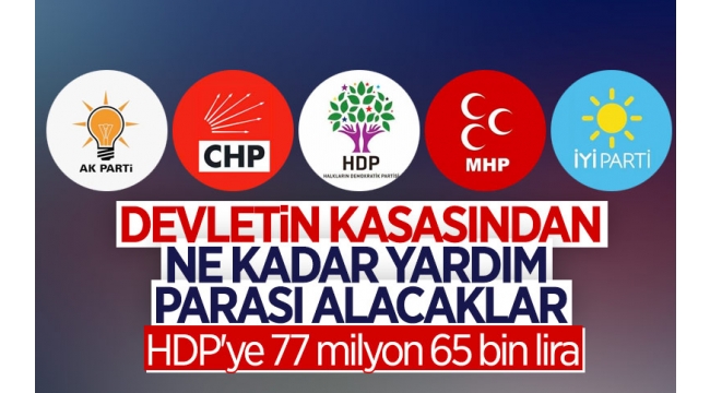 Ödenilecek tutarlar arasında en büyük 3. pay ise HDP'ye... Hazine'den HDP'ye 77 milyon 65 bin lira aktarılacak.