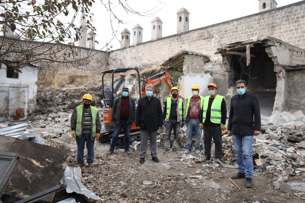 Melikgazi Belediyesi, 500 yıllık geçmişiyle tarihin izlerini taşıyan Gön Han'ı restore etmek için restorasyon çalışmalarına başladı