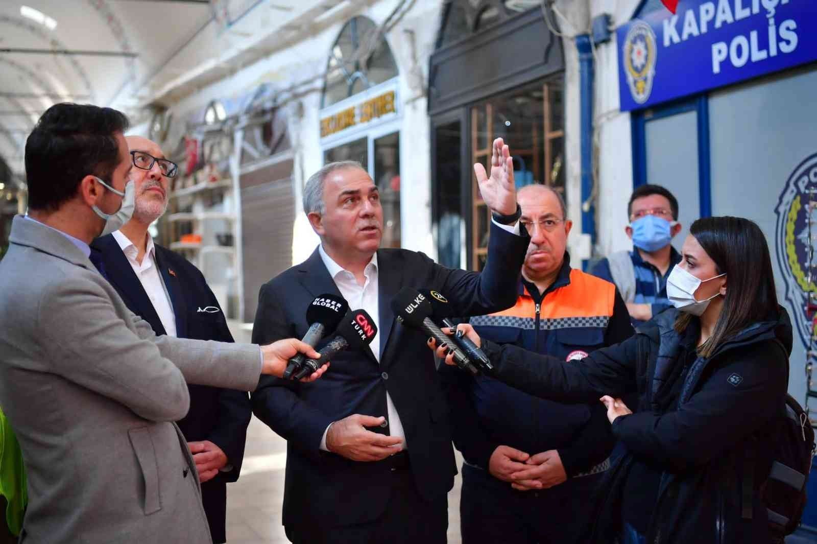 Restorasyon için verilen süreyi 6 ay öne çektiklerini aktaran Başkan Turan, "Restorasyon çalışmalarını yürüten firmaya ve Kapalıçarşı esnafına teşekkür ediyorum. Onlar başından beri gerçekten fedakarlık yapıyorlar. Bizler de bitişi 6 ay geriye çektik. İnşallah 6'ıncı ayda buradaki bütün işlerimiz bitmiş olacak. Zaten son 3 ayda sadece kalem işlerimiz kalacak. Çarşı bittikten sonra çarşımız yüz akı bir şekilde tekrar açılmış olacak. Buradaki çalışan esnafımıza ve Türkiye ekonomisine hizmet etmiş olacak. Taban döşemesinin yüzde yüzünü tamamladık. Kalem işleri de yüzde 15 aşamasında. 6. ayın sonuna kadar bütün imalatlar, kablo sistemlerinin baspara alınması ve kalem işleri dahil olmak üzere bitmiş olacak. 6. ayın sonunda inşallah yepyeni bir Kapalıçarşı'yı açmış olacağız. Önümüzdeki turizm sezonunda farklı bir Kapalıçarşı'ya uyanmış olacağız" dedi.