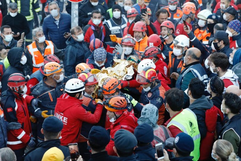 Ege Denizi'nde Seferihisar açıklarında meydana gelen 6,6 büyüklüğündeki depremin ardından Bayraklı’da çöken Doğanlar Apartmanı’nda enkaz altında kalan 3 yaşındaki Elif Perinçek yaralı olarak kurtarıldı.