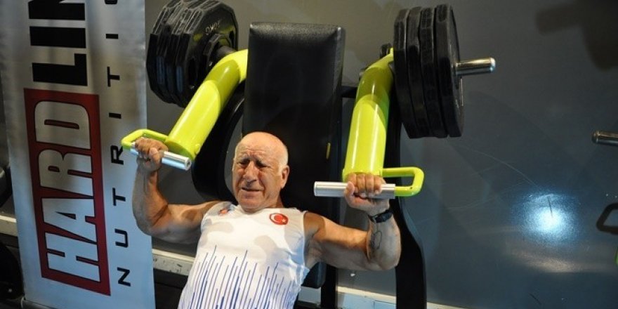71 yaşındaki spor sevdalısı Hayrettin Sönmez, daha önce kırılmamış rekor için ağrılık masasının altına geçerek normalde 5 kere kaldırması gereken 250 kilo ağırlığı arka arkaya 8 kere kaldırdı ve rekorun sahibi oldu