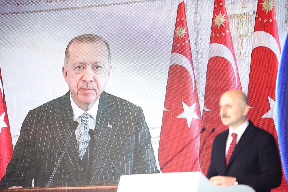 Bakan Karaismailoğlu'nun konuşmasının ardından, Cumhurbaşkanı Recep Tayyip Erdoğan telekonferans yöntemi ile bağlantı yaparak konuşmasını gerçekleştirdi.