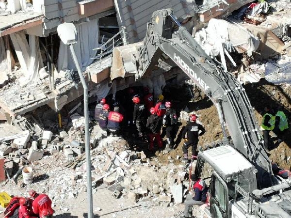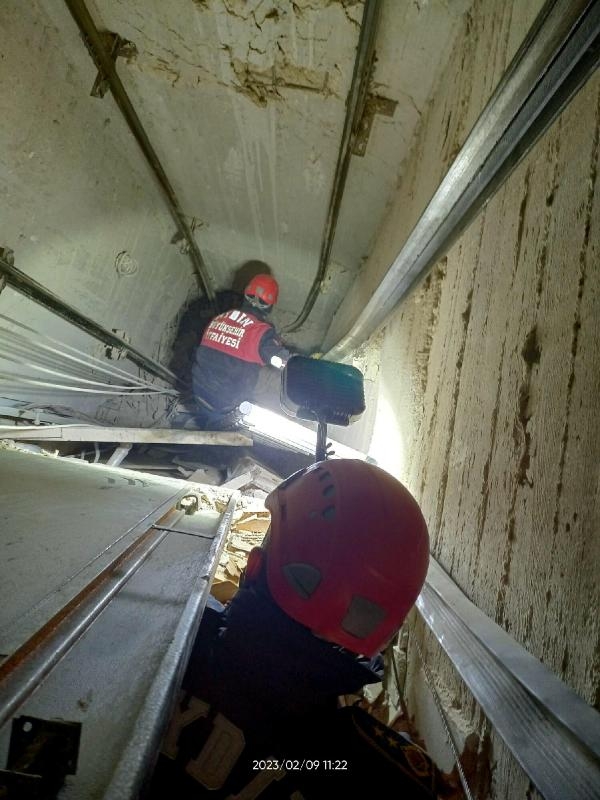 Antakya'nın Ekinci Mahallesi İnönü Bulvarı 15'inci Sokak'taki 6 katlı apartman, depremde yıkıldı. Arama-kurtarma çalışmaları sırasında binadan sesler geldiğini tespit eden ekipler, enkazın ön kısmında saatler süren çalışma yaparak koridor açtı.