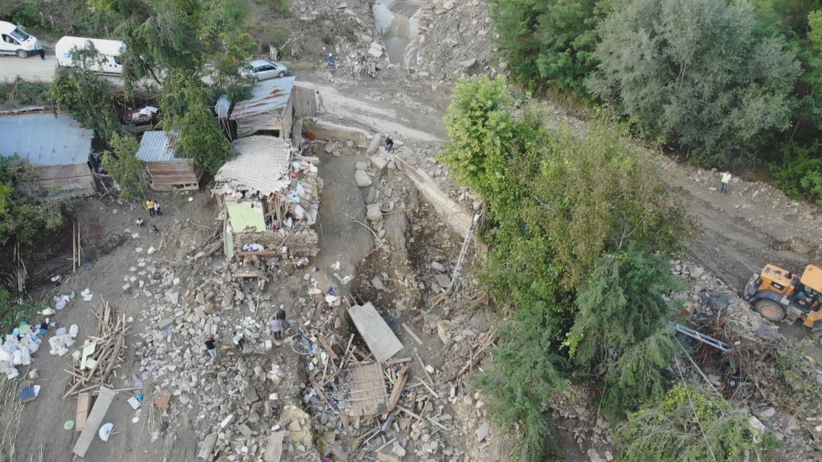Bartın'da sele kapılan 84 yaşındaki Arife Ünal'ı arama çalışmaları drone desteğiyle havadan da sürüyor.