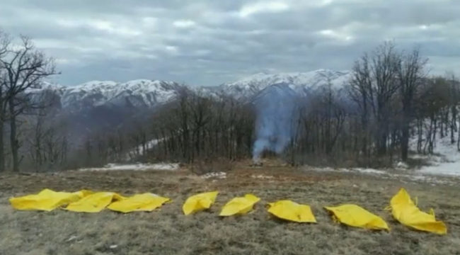Tunceli'de öldürülen 9 teröristin cesedi sarı poşetlere konularak toplandı.
