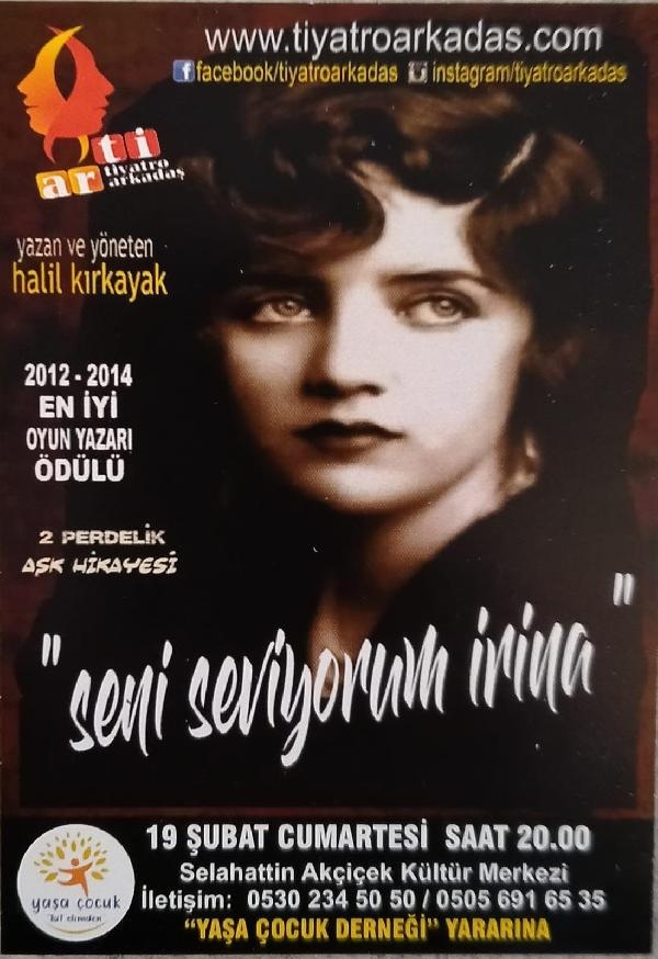 Tepecik Eğitim ve Araştırma Hastanesi Çocuk Onkolojisi Sınıf Öğretmeni ve Yaşa Çocuk Derneği Başkanı Selma Özdemir de onkoloji anneleri ve gönüllüleri tarafından başta onkoloji hastası çocuklar olmak üzere tüm hasta çocuklar ile ailelerine maddi ve manevi yardımda bulunmak amacıyla 2019 yılında dernek kurduklarını söyledi. Dernek üyelerinin büyük bir hızla çalışıp Tepecik Çocuk Onkoloji Servisi başta olmak üzere pediatri ve çocuk hastaların ailelerinin ihtiyaçlarını güçleri yettiğince gidermeye çalıştığını anlatan Özdemir "19 Şubat'ta Halil Kırkayak'ın 'Seni Seviyorum İrina' adlı oyunu var. İki kişilik, iki perdeli bir oyun. Herkesi bekliyoruz. Salonumuz pandemi koşullarına uygun hazırlandı. Buradan elde edilecek gelirle hastanemizde hasta çocukların anneleri tarafından yemeklerin yapıldığı 'anne mutfağına' destek olacağız. Eksik malzemeler tamamlanacak. Oyunumuza gelmek isteyenler biletleri derneğimizi arayarak temin edebilirler" diye konuştu.