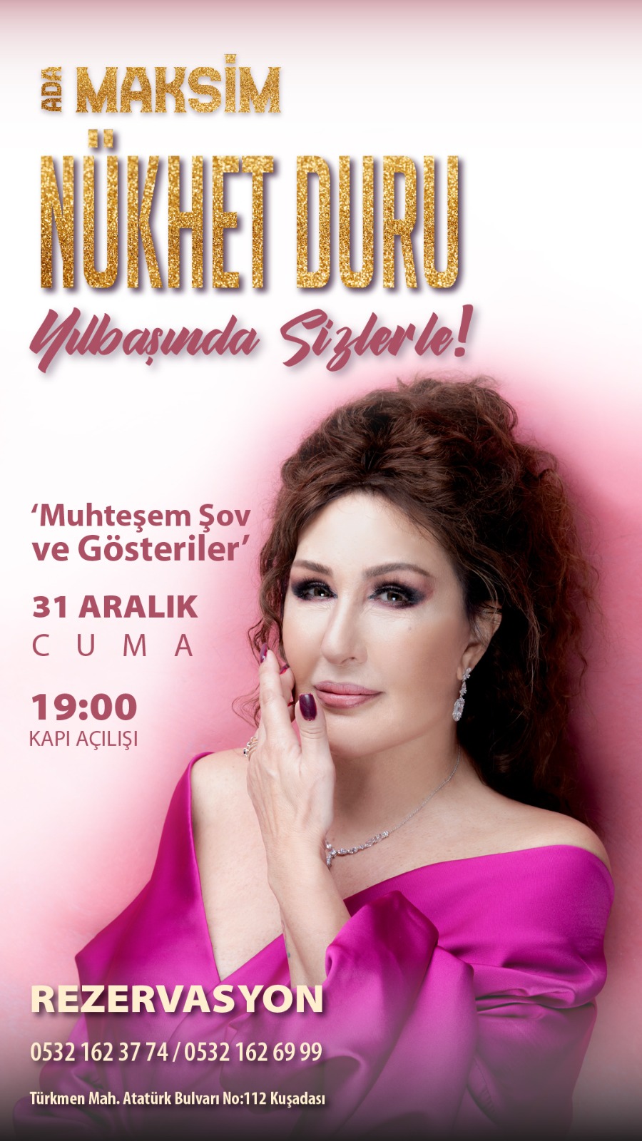Ege'ye gazino gecelerini yeniden kazandıran Kuşadası Ada Maksim'de yılbaşı gecesi ünlü sanatçı Nükhet Duru sahneye çıkacak.