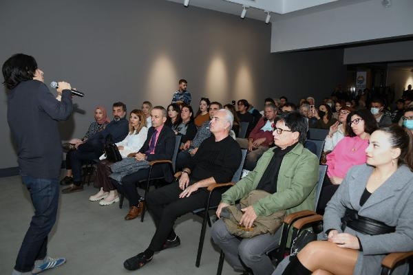 AYDIN'ın Kuşadası Belediyesi ve Kuşadası Fotoğraf ve Sinema Sanatı Derneği (KUFSAD) iş birliğinde Ada Modern Sanat Galerisi'nde düzenlenen 'Sinema, Fotoğraf ve Sanat Üzerine Söyleşi' etkinliği kapsamında televizyon programcısı Okan Bayülgen sanatseverler ile bir araya geldi.