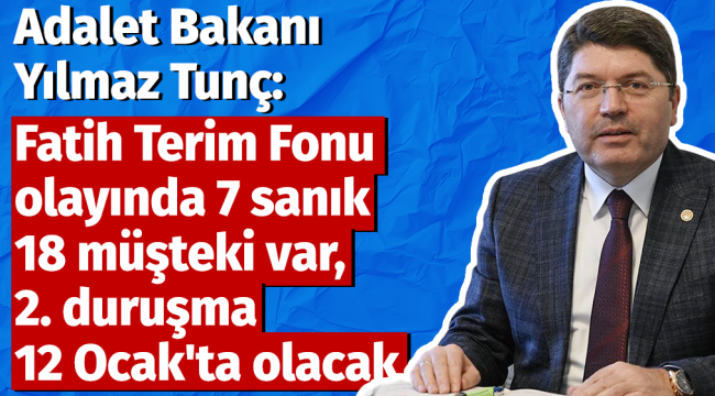 Adalet Bakanı Yılmaz Tunç, futbol camiasının ve iş insanlarının dolandırıldığı yüksek gelir vaat eden gizli fon olayına ilişkin 12 Ocak'ta ikinci duruşmanın yapılacağını ifade etti. Tunç ayrıca, iddianamenin kabul edildiğini açıkladı.