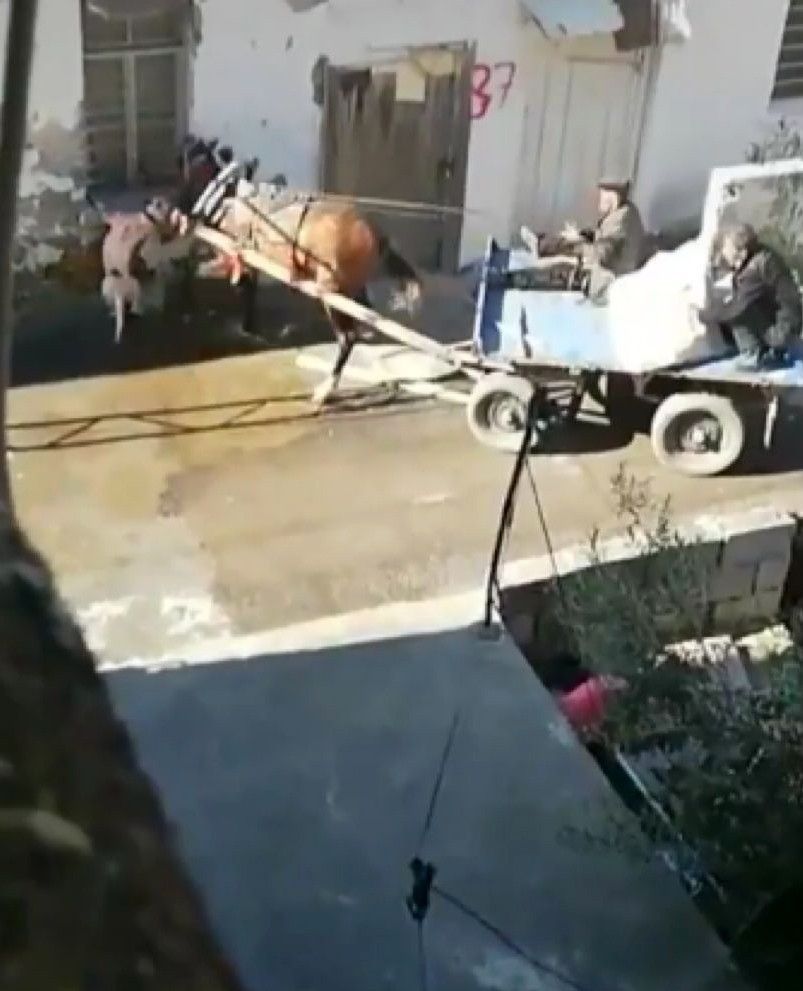Adana'da sokakta pitbull cinsi bir köpek hurda taşıyan ata saldırdı. Atın kendini savunmaya çalışması ile at arabası üzerindeki 2 kişinin korku dolu anları cep telefonu kamerasıyla görüntülendi.