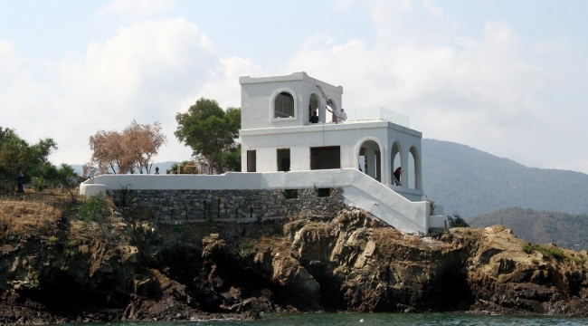 Adaya kaçak villa! Ekipler tekneyle gelip yıktı