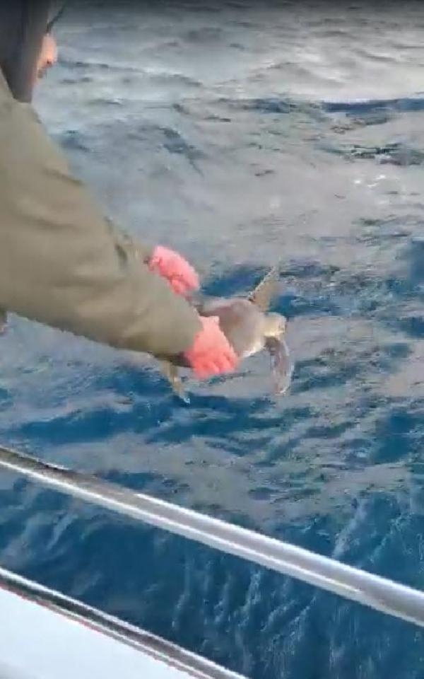 Ağa takılan deniz kaplumbağasını balıkçı kurtardı
