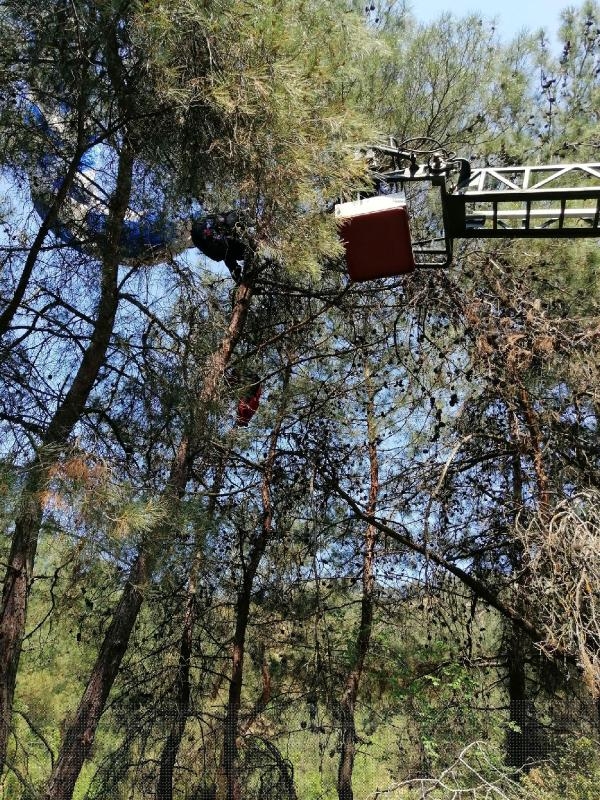 Ağaca asılı kalan amatör paraşütçü kurtarıldı