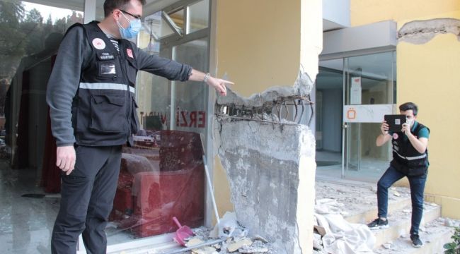 İzmir'de meydana gelen şiddetli depremin ardından çok sayıda bina yıkılırken, kimi de ağır, orta ve hafif olmak üzere hasara uğradı. Bayraklı ve Bornova ağırlıkta olmak üzere İzmir'de 107 binin üzerine binada hasar tespit çalışması yapıldı. Çalışmaların bu akşam sonlanacağını belirten Yapı İşleri Genel Müdürlüğü olarak Afet Koordinasyon Dairesi İzleme ve Değerlendirme Şube Müdürü Utku Kadıoğlu, 107 bin binanın içerisinde ağır hasarlı bina sayısının 414 olduğunu, 32 acil yıkılacak binanın bulunduğunu söyledi.
