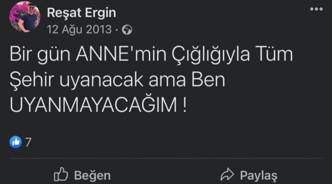 Öte yandan 16 Aralık 2019'da uzman çavuş olan Reşat Ergin'in, 9 yıl önce Twitter'daki hesabından "Annemin çığlığıyla tüm şehir uyanacak ama ben uyanmayacağım" paylaşımını yaptığı görüldü. (DHA)
