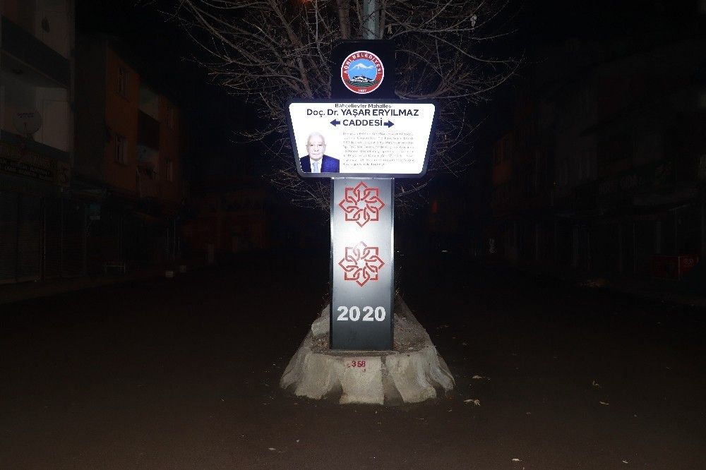 Ağrı Belediyesi tarafından caddelere isimleri verilen geçmiş dönemlerde siyaset yapmış kişilerin fotoğrafı ve özgeçmişi ile hazırlanan dekoratif tabelalar yerlerine yerleştirildi