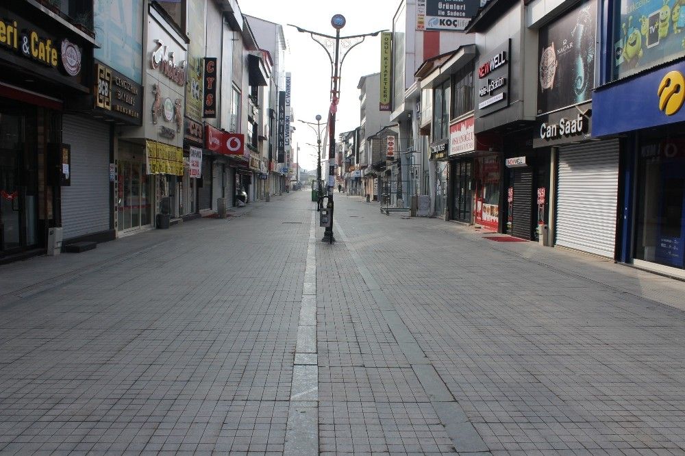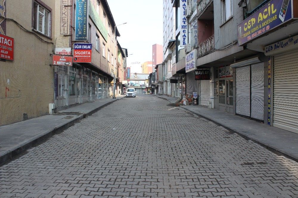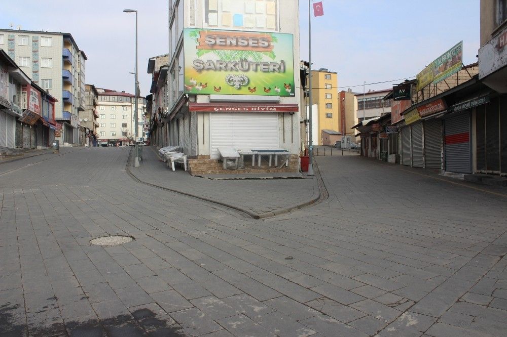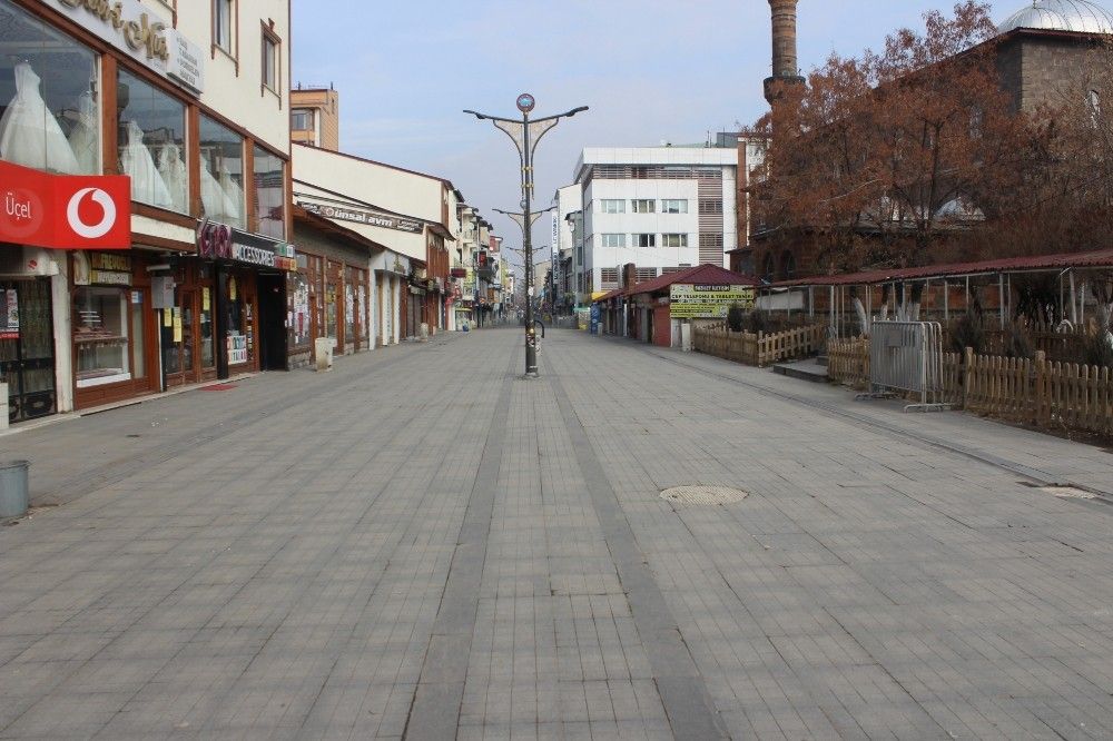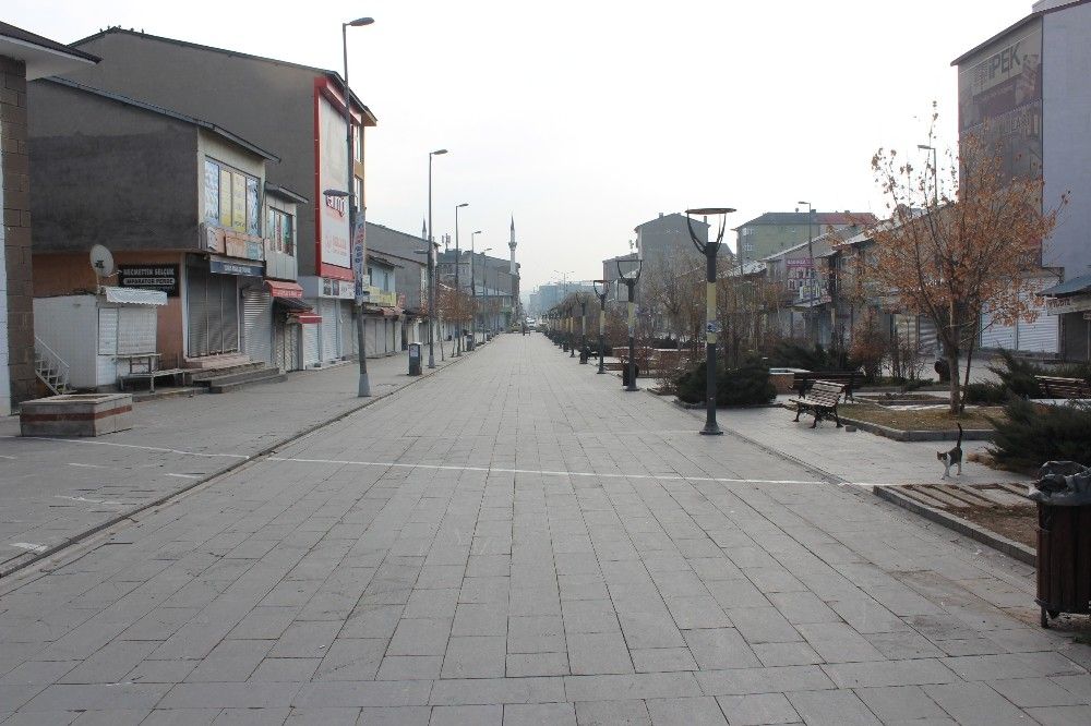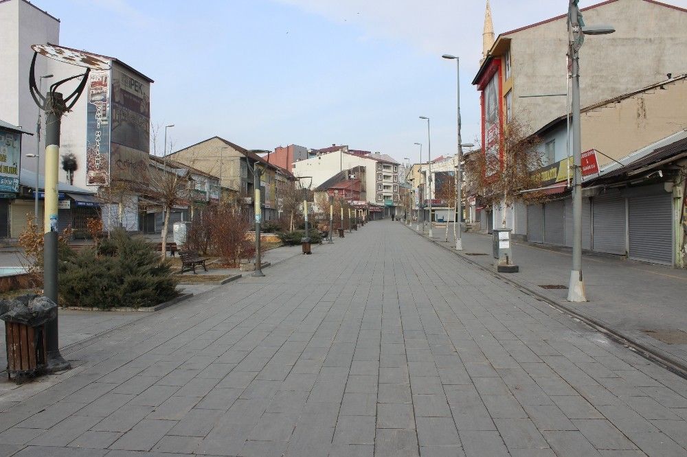 Korona virüs tedbirleri kapsamında hafta sonu boyunca ilan edilen sokağa çıkma kısıtlamasının 2'nci haftasının ilk gününde, Ağrı'nın cadde ve sokakları sessizliğe büründü