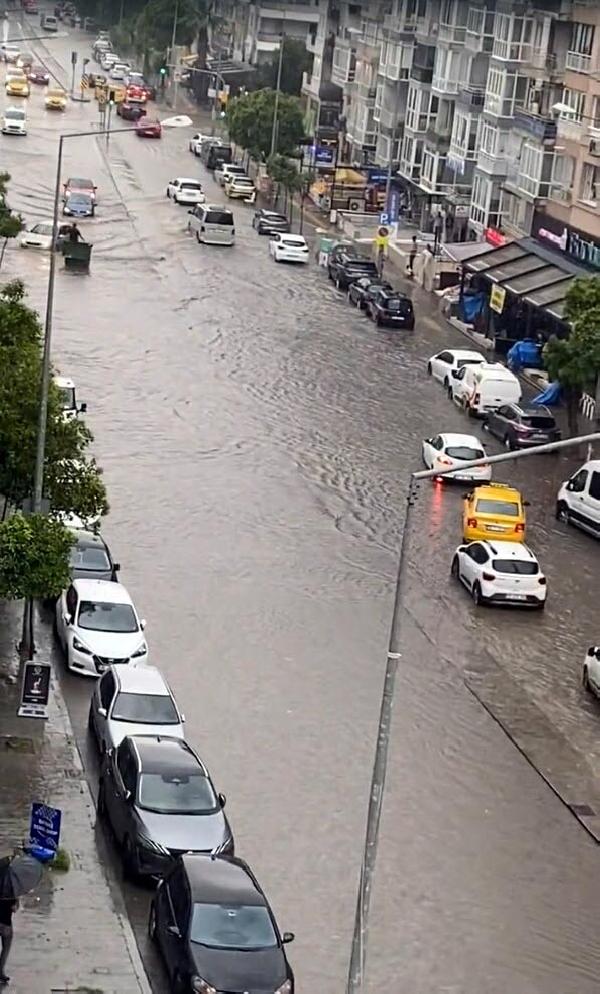İzmir'de yağmur sonrası yine aynı manzaralar yaşandı... Öğleden sonra etkili olan sağanak nedeniyle yollar göle döndü, dükkanları su bastı.