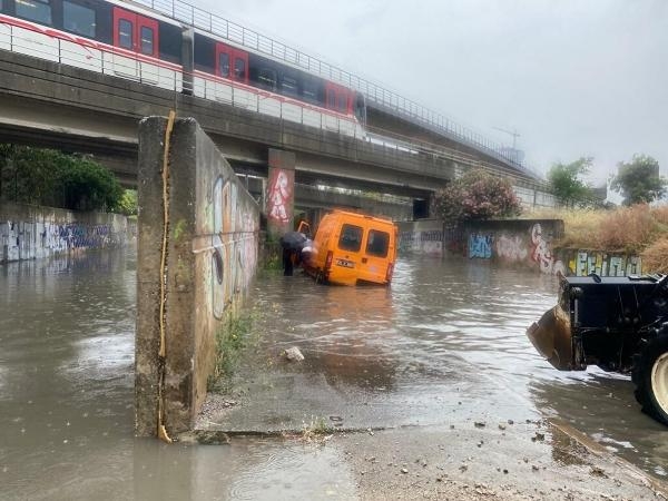 Çınarlı alt geçitte mahsur kalan 2 kişi, bir süre sonra İZSU ekipleri tarafından kurtarıldı.