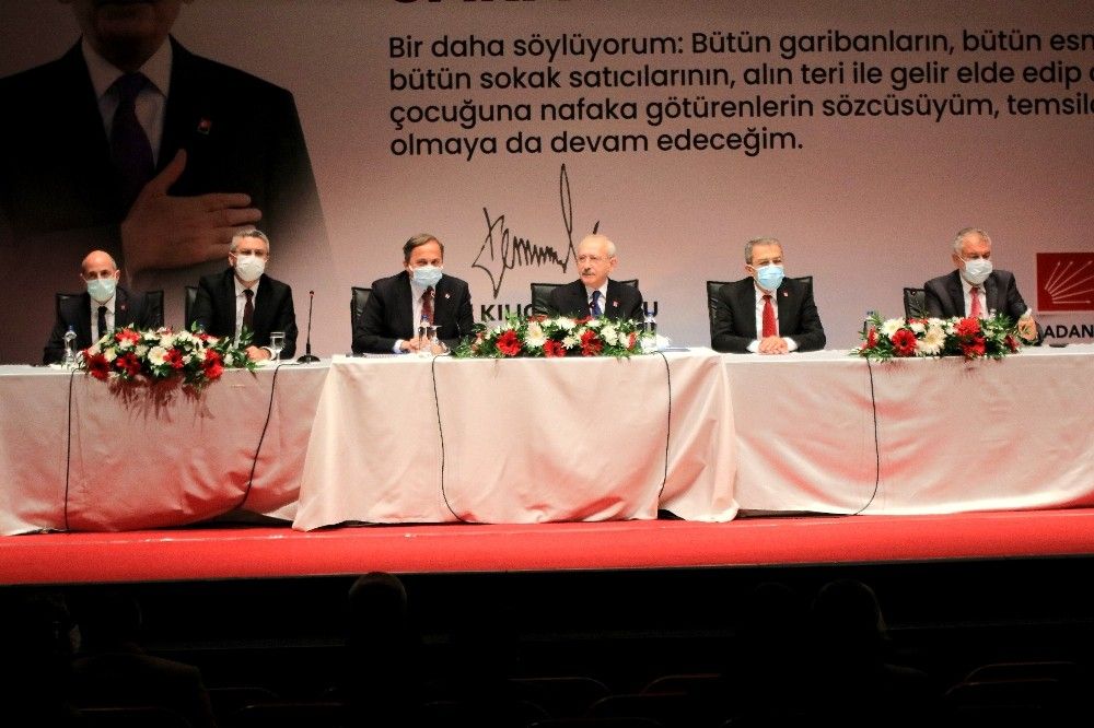 Ardından Adana Büyükşehir Belediyesi Tiyatro Salonu'nda esnafla buluşan Kemal Kılıçdaroğlu, burada yaptığı konuşmada, "Bütün esnaf kardeşlerimin bu süreçte çok büyük sıkıntı yaşadığını biliyorum. En baştan itibaren hiç kimseyi suçlamadan nelerin yapılması gerektiğini anlattım. Karar alındı bütün işyerleri kapandı ama esnaf kardeşim gelir elde edecek mi? Hayır. Sosyal devlet bizim anayasamızda değiştirilmesi teklif edilemeyen yasanın içinde yer alıyor. Sosyal devlet fakirin, garibanın yanında olan devlet demektir. Sosyal devlet budur. Esnafın bir artısı daha var. Anayasa da esnaflarla ilgili özel bir düzenleme var. Sanayici, turizmci için yok. Esnafın korunması için anayasa özel bir düzenleme yapmış. Yani bir anlamda devlet dediğimiz kurumun ana omurgasını esnaf oluşturuyor. Bütün coğrafyada esnaf vardır" diye konuştu.