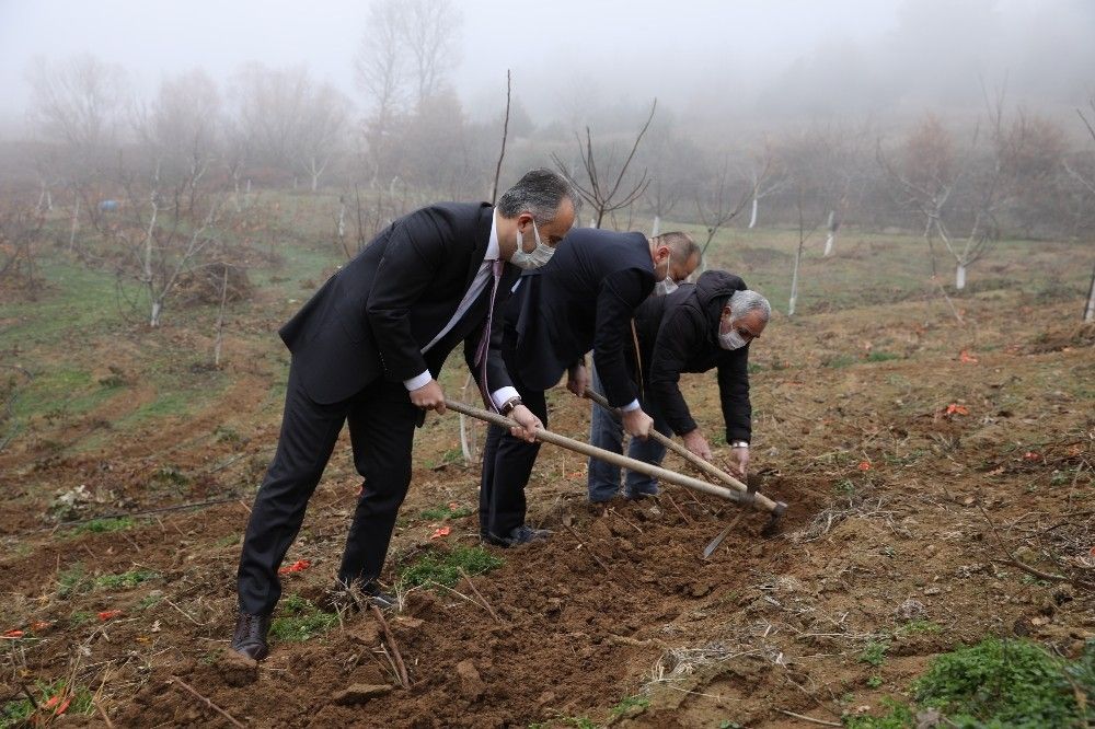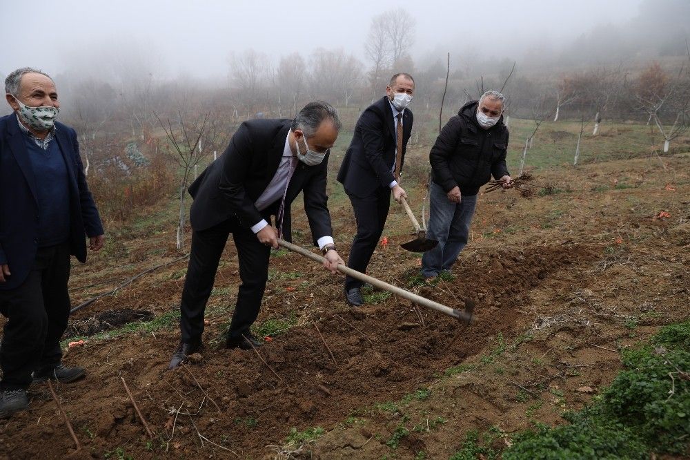 Orhaneli ilçesi Göknükbelen köyünde düzenlenen ahududu fidan dikim törenine katılan Büyükşehir Belediye Başkanı Alinur Aktaş ve Orhaneli Belediye Başkanı Ali Aykurt, Tarım AŞ Genel Müdürü Fetullah Bingül'den proje ve çalışmalar hakkında bilgi aldı. Daha sonra Başkan Aktaş, ahududu fidanını toprakla buluşturdu. Tarihi İpek Yolu'nun tarım başkenti olan Bursa'nın iklim, coğrafya ve flora açısından büyük avantajlar barındırdığını söyleyen Büyükşehir Belediye Başkanı Alinur Aktaş, şehirde katma değerli ürünleri desteklemek, üretimi ve kaliteyi artırmak amacıyla çıktıkları yolda büyük mesafe kat ettiklerini belirtti.
