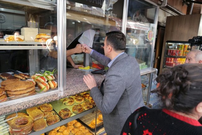 Hamza Dağ, daha sonra Bornova Hükümet Konağı çevresindeki iş yerlerini gezerek esnafla sohbet etti.