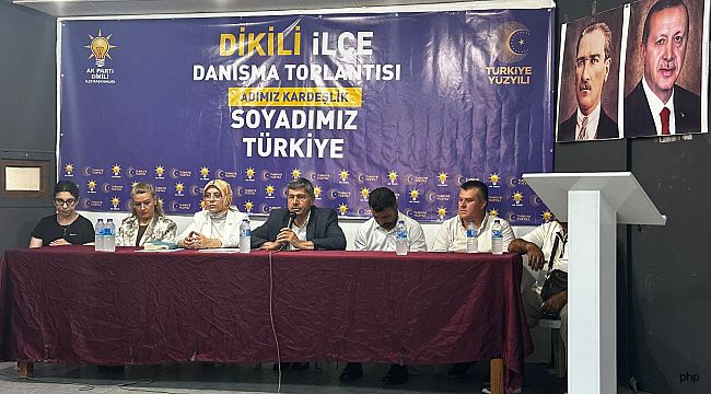 AK Parti Dikili İlçe Danışma Meclisi Toplantısı, Dikili Belediyesi kültür evi konferans salonunda gerçekleştirildi. Toplantıya AK Parti İzmir İl Başkan Yardımcısı ve teşkilat Başkanı Rahmi Taştan, İl Yönetim Kurulu üyeleri, AK Parti Dikili İlçe Başkanı Tahsin Şekerci ve teşkilat mensupları katıldı. Burada konuşan İlçe Başkanı Tahsin Şekerci, "Biz yaptıklarımızı anlatacağız. Sizler sorularınızı soracaksınız. Eksiklerimizi, önerilerinizi paylaşacaksınız. Buradaki divan önünde bir takım müzakereleri yapacağız ki geçmişten ders alıp geleceğe sağlam adımlarla yürüyelim. Tarıma Dayalı Organize İhtisas Sanayi Bölgesi projemizle, Kaynarca Bölgesi'nde 3.500 insanımızın, 3.500 ailenin ekmek yiyeceği önemli bir projeye imza attık. Şu anda altyapı ihalesine çıkıyor. Belki birkaç gün içerisinde başlayacak. Altyapı tamamlandıktan sonra burada seralar kurulacak: 50 adet büyük sera, 35 adet paketleme tesisi olacak. Bu projelerin toplam maliyetini hesapladığımızda, sadece bu tek projenin, Dikili Belediyesi'nin 30 yıllık hizmetlerinin belki 50 katı büyüklükte bir bütçeyle hazırlandığını görüyoruz. Ayrıca ilçemiz için büyük öneme sahip olan devlet hastanemiz. Biliyorsunuz, önceki bina küçüktü ve yetersizdi. Şimdi ise çok güzel bir devlet hastanesini kazandırdık. İnşallah çok kısa zamanda açılışını hep birlikte yapacağız. Artık merdiven altı devlet hastanelerinde oralarda rapor almak veya tedavi olmak gibi bir derdin içerisine girmeyeceğiz. Bu hastanemiz de kısa zamanda inşallah hayata geçmiş olacak. Balıkçılarımızın sorunlarıyla ilgilendik, balıkçı barınaklarımızı tamir ettik. Yine inşallah, çok kısa bir zamanda yeni balıkçı barınağı inşaatımıza da başlayacağız. Yaptığımız hizmetlerin reklamını, Cumhuriyet Halk Partili Belediye Başkanı kendi yapmış gibi ya da yandaşları sanki onlar yapmış gibi bir propaganda yapıyorlar. Bu yüzden teşkilat olarak çok dikkatli olmalı ve sahip çıkmalıyız. Gençlerimize kapalı spor salonu, yarı olimpik yüzme havuzu, gençlik merkezi ve büyük bir futbol sahası; etrafında tenis kortlarının, basketbol sahalarının da olduğu dev bir spor kompleksi kazandırdık. Bu kompleks çok kısa bir zaman içinde - bir iki ay içerisinde bitecek inşallah. Gençlerimiz burada hem rahat spor yapabilecek, hem de sosyal faaliyetlerini gerçekleştirebilecekler. Bu projeleri, Sayın Bakanımız Mehmet Muharrem Kasapoğlu'nun sadece 15 dakikalık ziyareti sırasında söz alarak ve teşkilatlı bir takip süreciyle hizmete kazandırmış olduk."