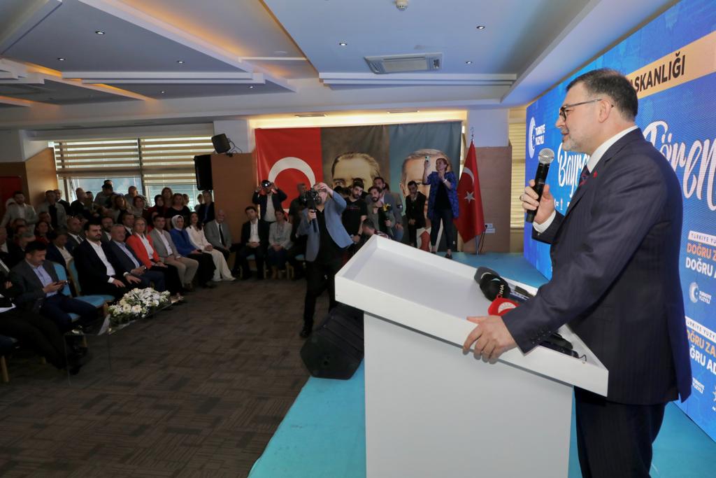 İl Başkanı Bilal Saygılı, "Türkiye Yüzyılına çıkmış bulunuyoruz. Sayın milletimiz, Sayın Cumhurbaşkanımız Recep Tayyip Erdoğan'ın ortaya koyduğu misyon ve vizyon doğrultusunda doğru zaman, doğru adam diyerek yolumuza başladık. Süreçte birçok terör sevicilerini gördük. Biz bunu görüyoruz ama sabredenler zafere ulaşır. Sabredersek zafer bizimdir. Son 20 yıla baktığımızda yakın tarihte çok şey gördük, 20 yıldır demokratik rejime geçmiş bir Türkiye görüyoruz. Gabar'da petrol çıkıyor, İHA'mızla, SİHA'mızla elhamdülillah Türkiye Yüzyılı'nı görüyoruz. 25 gündür gece gündüz sizlerle birlikteyiz, günde 2 saat uyuyorum, vekillerimize 4 saat uyuyabilirsiniz diyorum ama ben 2 saat uyuyorum. Hak ile batılın ayrıştığı 15 Mayıs yaşayacağız" ifadelerini kullandı.