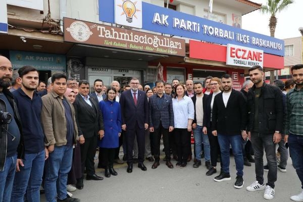 Torbalı'da yaptığı konuşmada teşkilattan, seçim çalışmalarında ilçeye yapılan kamu yatırımları ve 2014-2019 yılları arasındaki AK Belediyecilik dönemi farkının vatandaşlara anlatılmasını isteyen Saygılı, "İlçemizde 300'ün üzerinde belediye projesi hayata geçirmişiz; kamu yatırımlarımız sadece o dönemde 1 milyar TL'nin üzerinde gerçekleşmiş. Bu muazzam bir tablo. Torbalı Devlet Hastanesi, İZBAN, Ağız ve Diş Sağlığı Merkezi'nin yanı sıra 60'ın üzerinde okulu hemşerilerimizin hizmetine sunduk. Cumhurbaşkanımızın bu ilçemiz için de verdiği her sözü tuttu. Bakanlarımızın bir eli hep buradaydı, çok sayıda ulaşım yatırımı yaptık. Vatandaşlarımıza dokunurken, bunları anlatacağız. Yarattığımız hizmet farkını hatırlatacağız" açıklamalarında bulundu.