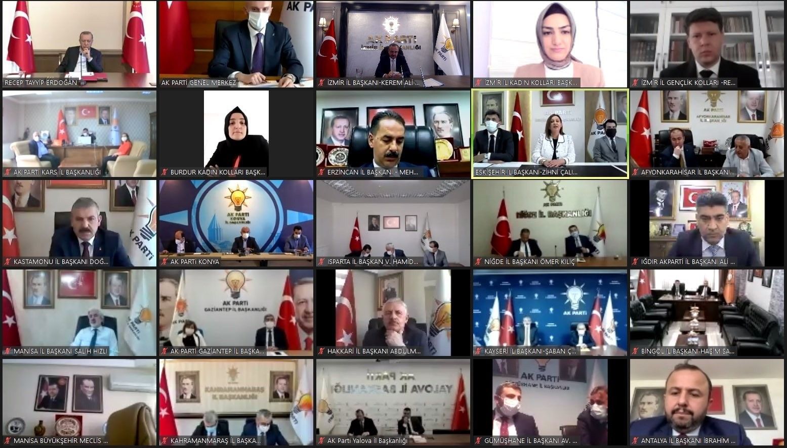 Cumhurbaşkanı Recep Tayyip Erdoğan, 81 ilin AK Parti il başkanlarıyla telekonferans yöntemiyle bir araya gelerek bayramlaştı. Bayramlaşma toplantısında tüm il başkanları adına AK Parti İzmir İl Başkanı Kerem Ali Sürekli konuştu. Başkan Sürekli, "Sadece dünyadaki Müslümanların değil insanlığın kıblesidir Kudüs. Bağımsızlıktır, adalettir, namustur. Ona reva görülen bu zulmün hesabı muhakkak ki sorulacaktır. Bugün Filistinli kardeşlerimize, bayram namazını işgal altında, bombaların altında kıldıran karanlığın orduları, nihayetinde mağlup olacaktır. Hamdolsun ki; şahsınızın kabiliyet ve örnek liderliği ile şirazesi kaymış, gözü dönmüş bu dünya düzenine, teröre, adaletsizliğe ve zulme dur diyebilen bir Türkiye'yiz. Zalimin karşısında ve daima ezilenin yanında olduğumuzu tüm dünyaya gösterebiliyorsak, bu sayededir. Bugün tüm dünya mazlumlarının umudu, sizin cesaretli ve kararlı duruşunuzdur. İnşallah bu mukaddes toprakların ve Filistinli kardeşlerimizin çektiği cezanın sonu da sizin liderliğinizde gelecektir. Bizler de sayenizde ve izinizde bu kutlu davanın yolcuları olmaktan ve sorumluluk almaktan gururluyuz. Size layık olmak üzere, davamıza sahip çıkıyor ve çalışıyoruz. Bilmenizi isteriz ki ülkemizin tüm dünyaya insanlık dersi veren güçlü tutumunun muvaffakiyet getirmesi için tüm il teşkilatlarımız teyakkuzdadır. Kudüs'ü Şerifi hedef alanlara, masumların kanını akıtanlara ve bu acıya seyirci kalanlara yaptığınız çağrılar, her bir ilimizde, ilçemizde köyümüzde yankılanmaktadır. AK Parti il teşkilatları olarak tüm imkan ve maneviyatımızla Kudüs'e bayramı getirecek direnci büyütmek için çalışıyoruz. Milletimizle tek vücut olduk, dimdik arkanızdayız. Allah ayağınıza taş değdirmesin, yolumuzu açık etsin" ifadelerine yer verdi.