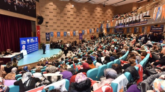 AK Parti'nin bir kadın hareketi olduğuna dikkati çeken AK Parti Genel Merkez Kadın Kolları Başkanı ve Düzce Milletvekili Ayşe Keşir, "AK Parti gençler ve kadınlar için siyaset okulu gibi çalışıyor. Parlamentodaki 50 milletvekilimizin 45'i teşkilatlarımızda yetişti. 1985'te üniversiteye başladığımda kız öğrencilerin oranı yüzde 7'idi. AK Parti kurulduğunda bu oran yüzde 13,5 idi. Üniversiteler büyükşehirlerde kümelenmişti, yasaklar, kat sayı uygulamaları vardı. Kadınlar, 'makbul olanlar' ve 'olmayanlar' diye ayrılmıştı. Bunların hepsini değiştirdik ve üniversitelerde kız öğrencilerin oranı yüzde 51. Kız çocuklarını okullara almayanlar, çocukları ikna odalarında terletenler Recep Tayyip Erdoğan'a kadın haklarından bahsediyorlar. 23 yıllık hikayemizin sonunda kamuda kadın istihdamı yüzde 49. Dün öğretmenleri okuldan başörtülü diye atanlar bugün kamuda kadın istihdamını yüzde 49 yapan Recep Tayyip Erdoğan'a kadın haklarından bahsediyorlar" dedi.