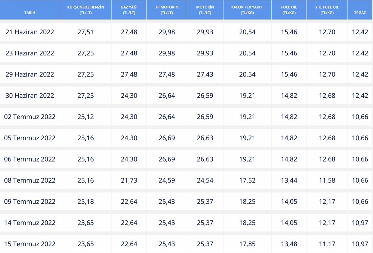 Öte yandan Türkiye Petrolleri Anonim Ortaklığı'nın yayınladığı veriye göre haziran ayından bu yana akaryakıt fiyatlarında yaşanan düşüş dikkat çekti.