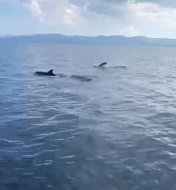 MUĞLA'da, denizdeki bir grup yunus, çevredekiler tarafından görüntülendi.