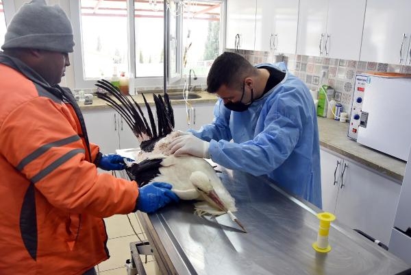 Akhisar'da avcıların vurduğu yaralı leylek bir daha uçamayacak