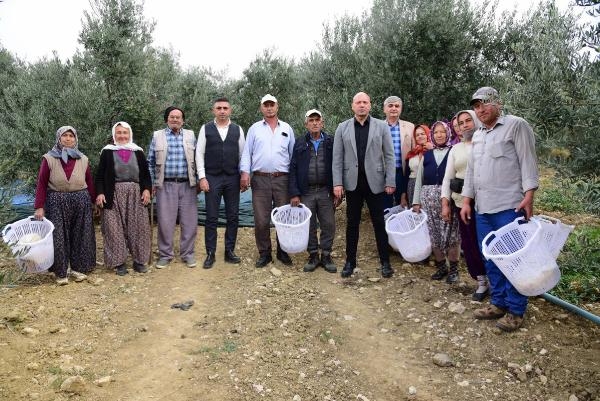 Akhisar'da zeytin hasadı yapan üreticilere koruyu ekipman desteği